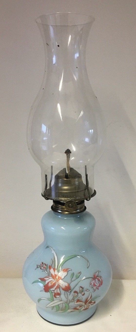 Title (ebay affiliate link): Lovely Vintage Paraffin Or Oil Lamp With Blue Glass Base
