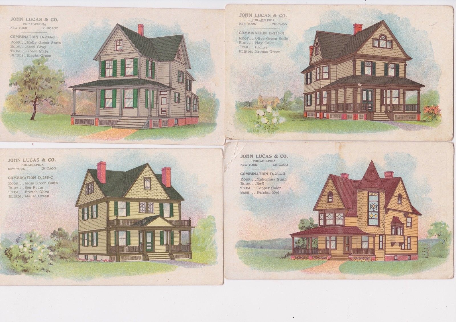 Vtg LUCAS PAINT Trade Card Lot of 4 Victorian Houses 4 Different Warner Park PA