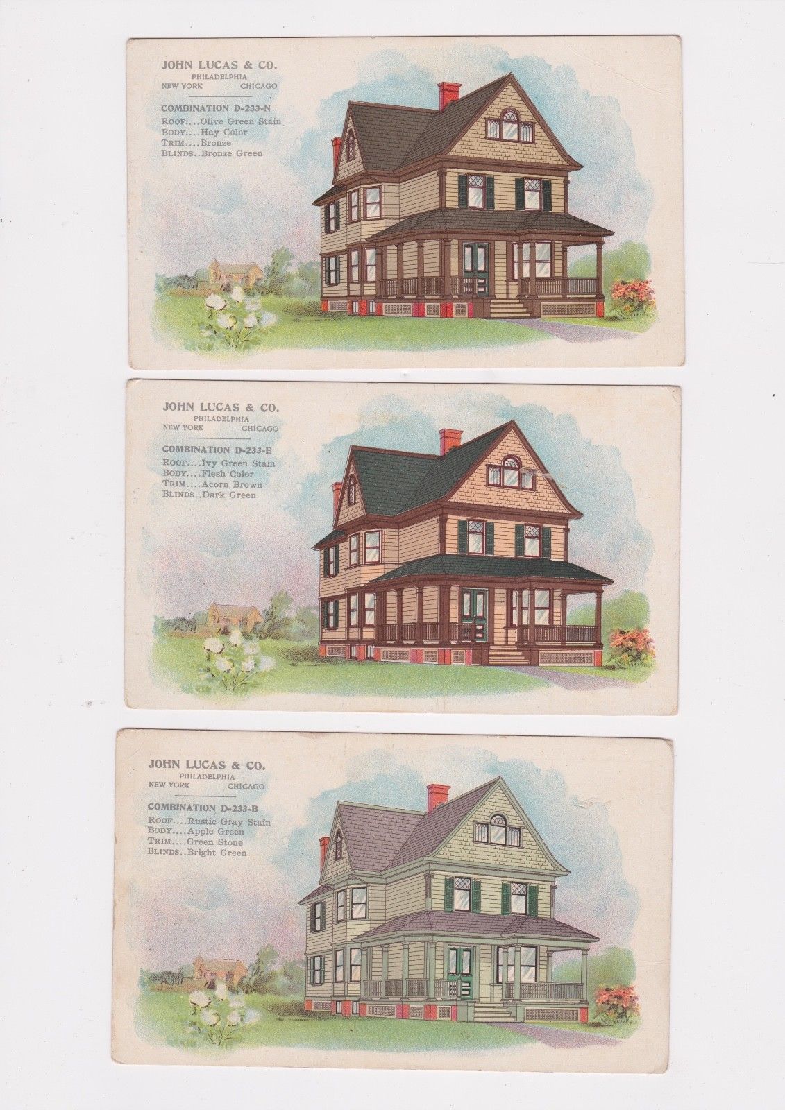 Vtg LUCAS PAINT Phila. New York Chicago 3 Trade Cards Same House Different Color