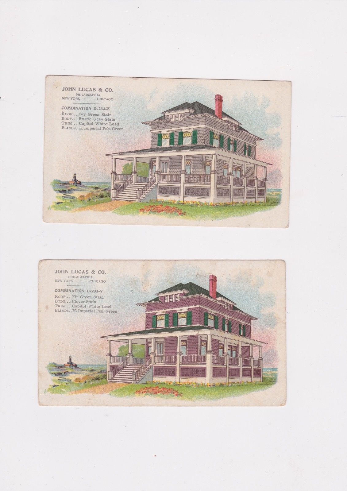 Vtg LUCAS PAINT Phila. New York Chicago 2 Trade Cards Same House Different Color