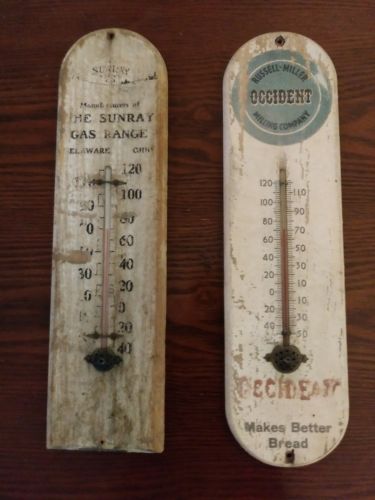 Title (ebay affiliate link): Antique Wood Advertising Thermometer SUNRAY GAS RANGE-OCCIDENT MILLING CO. Works