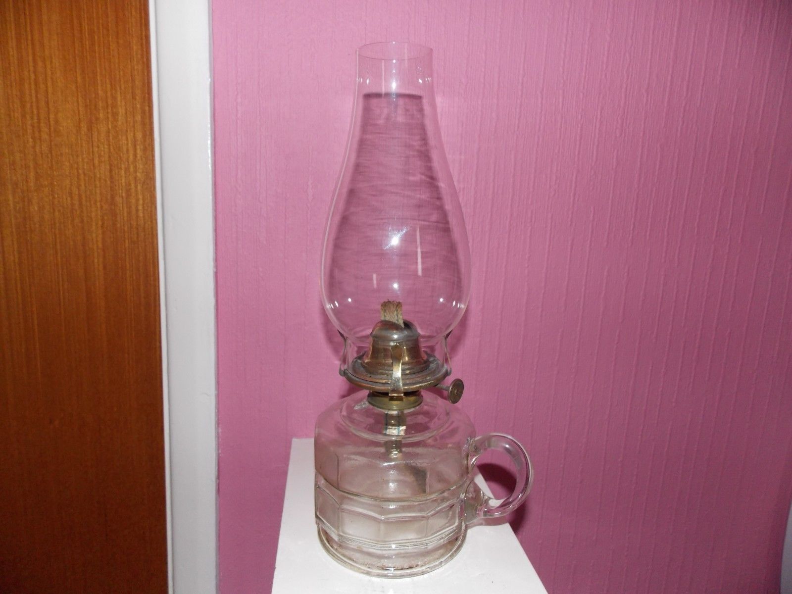 LARGE FINGER HOLD GLASS OIL LAMP
