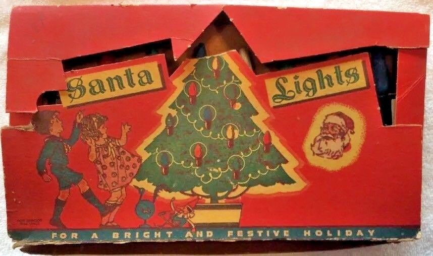 Title (ebay affiliate link): Vintage 1930s SANTA LIGHTS Christmas Tree Electric String C6 Lamps~Orig Box-WORK