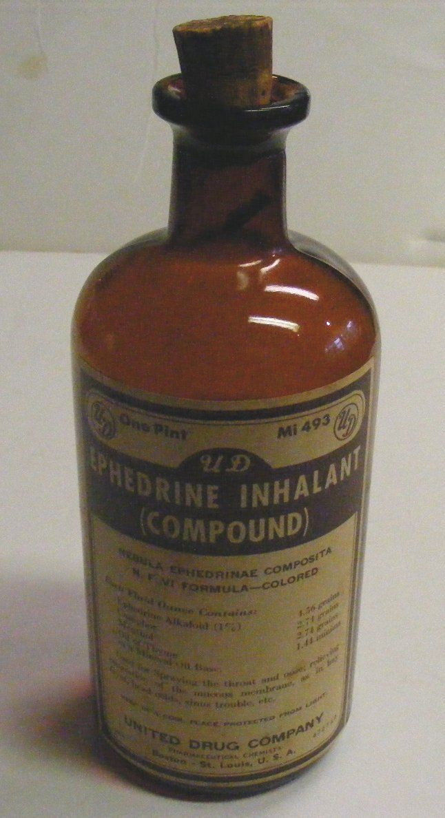 Title (ebay affiliate link): ANTIQUE MEDICINE BOTTLE EPHEDRINE INHALANT COMPOUND 1 PINT HALF FULL PAPER LABEL