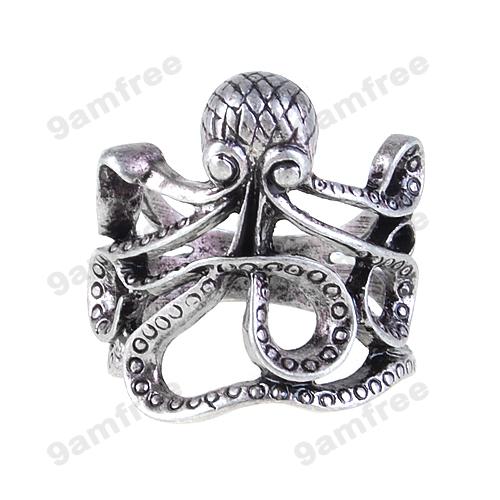 Octopus Vintage Style Antique Silver Copper Finger Ring