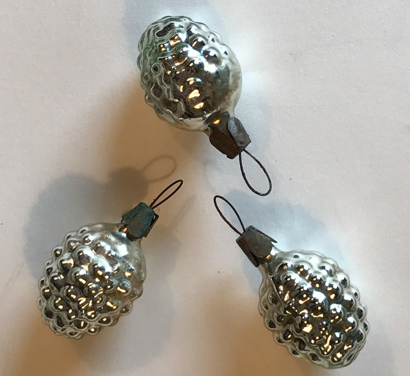 Title (ebay affiliate link): 3 Antique Vintage Silver Pinecone Grape Berry Glass Christmas Tree Ornaments