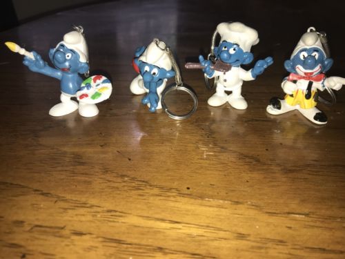 Title (ebay affiliate link): **4** Smurf figure key chains - vintage - excellent condition