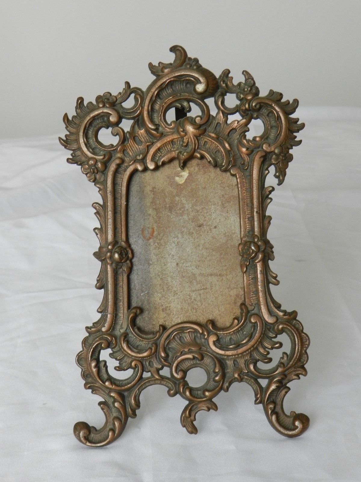 Antique Bronze Copper over Cast Iron Easel Style Metal Standing Picture Frame