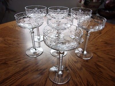 RARE Antique Wheel Cut Crystal Champagne Sherbet Glasses Set of 7