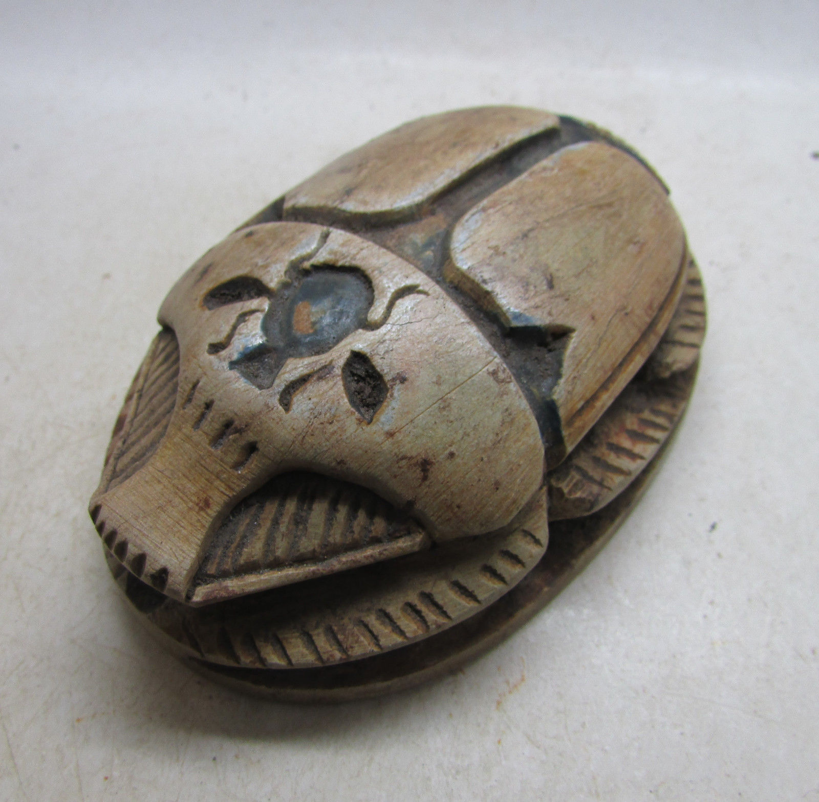 Title (ebay affiliate link): LARGE ANCIENT EGYPTIAN STONE SCARAB WITH HEIROGLYPHICS