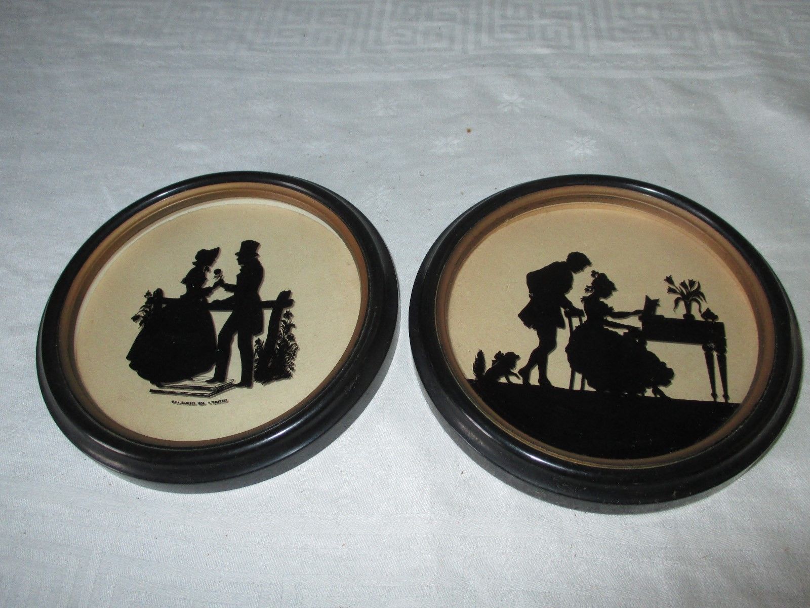 2 VINTAGE CONVEX GLASS SILHOUETTE FRAMED PICTURES