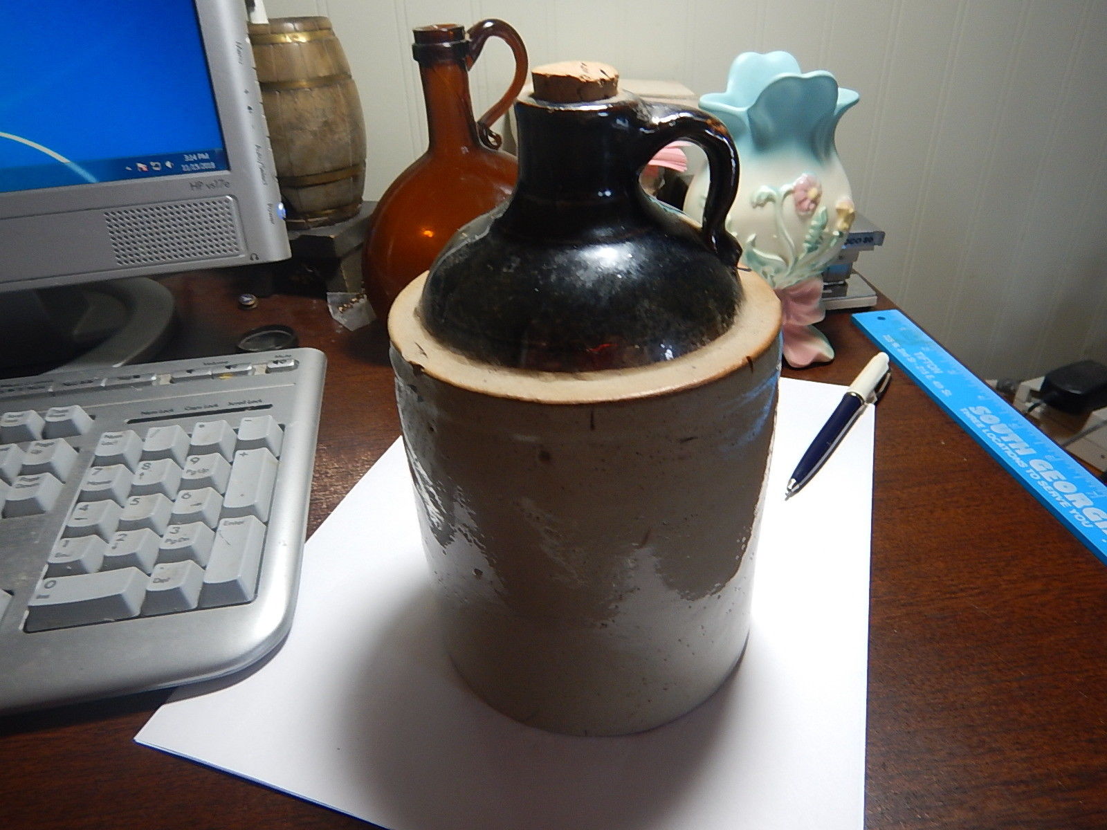 Title (ebay affiliate link): Nice Vintage Antique 1 quart Unmarked Brown Top Whisky Jug old estate