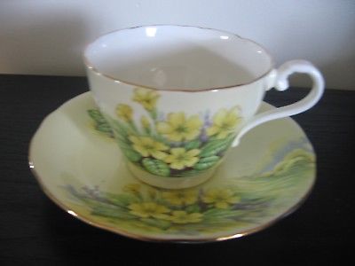 AYNSLEY MINT GREEN YELLOW BUTTERCUP TEACUP AND SAUCER