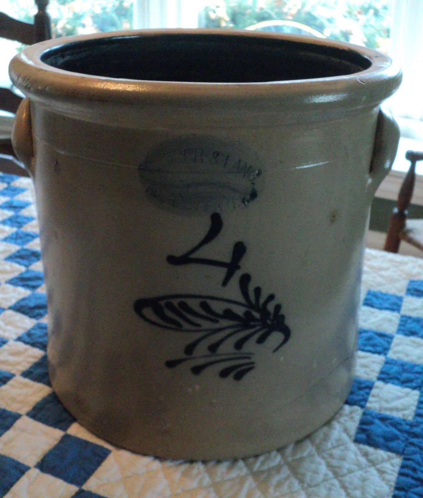 Burger & Lang (Rochester, NY) 4 gallon stonware Crock w/ Cobalt Bee