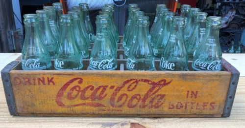 Title (ebay affiliate link): VINTAGE COCA COLA YELLOW CRATE WITH 24 BOTTLES