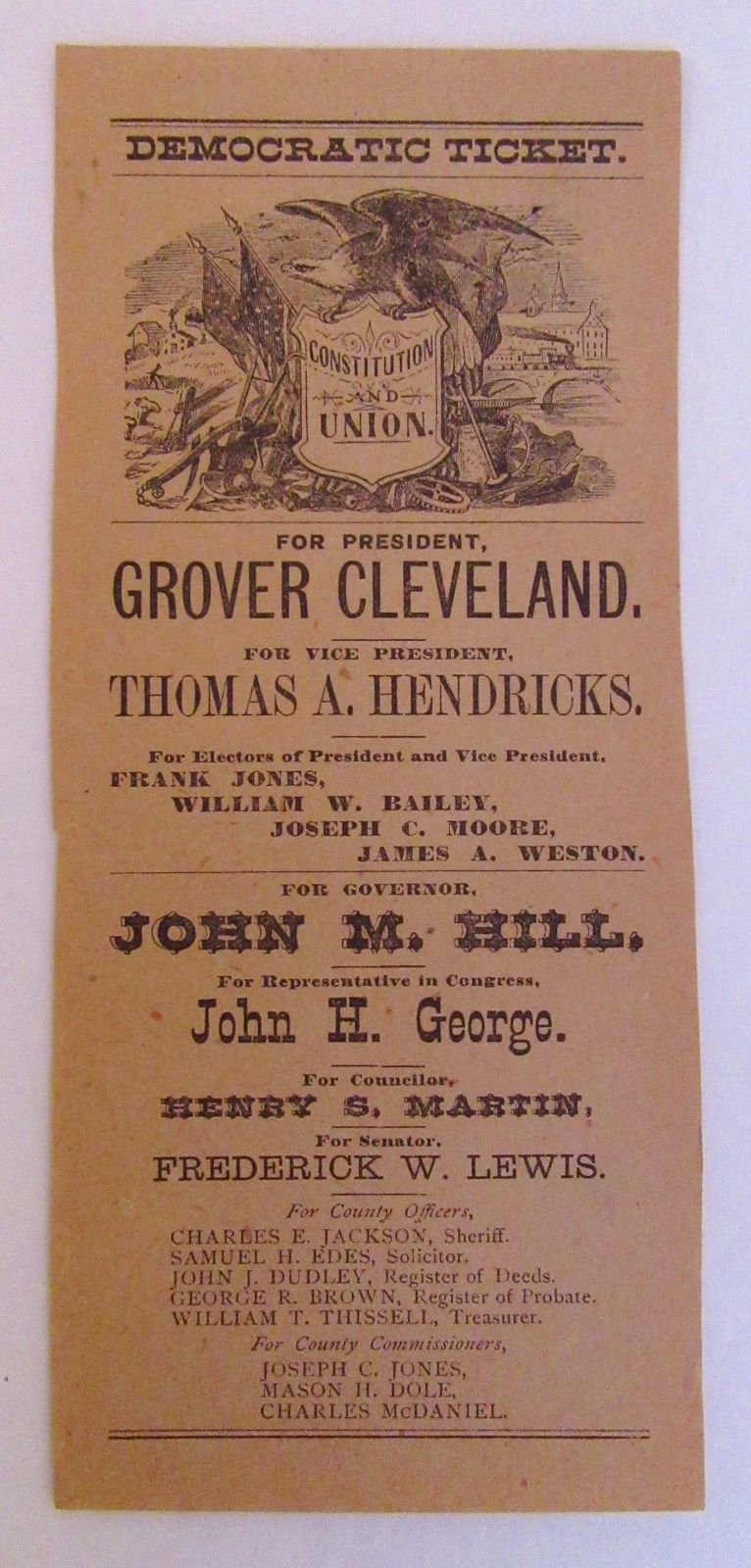 1884 Democratic Ticket GROVER CLEVELAND & HENDRICKS, New Hampshire Candidates