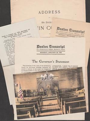 Calvin Coolidge Lot~Address as Mass. Governor 1920 + PC + 3 News Stories 1919~VG