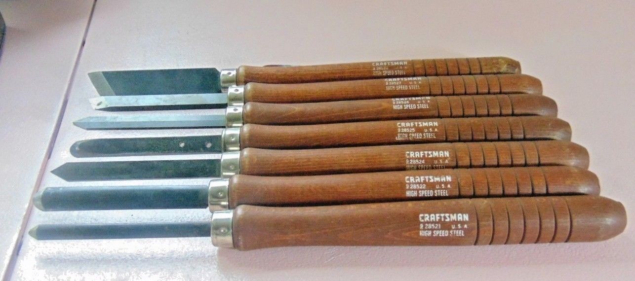 Title (ebay affiliate link): Vintage Estate Craftsman 7 pc. wood turning chisel set Made in USA