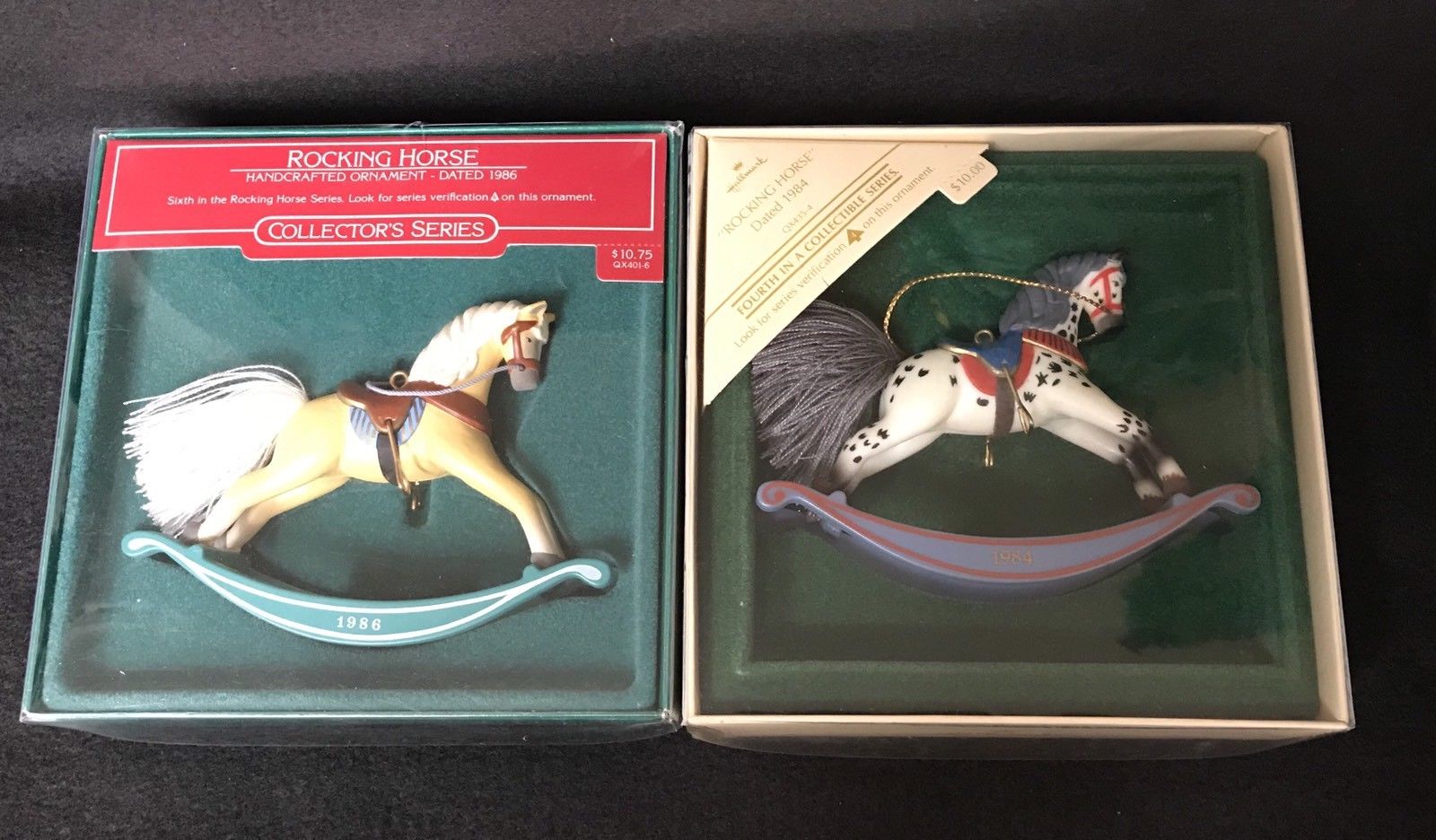 Title (ebay affiliate link): 2 Hallmark Keepsake Rocking Horse Christmas Tree Ornaments 1984 1986 in Box