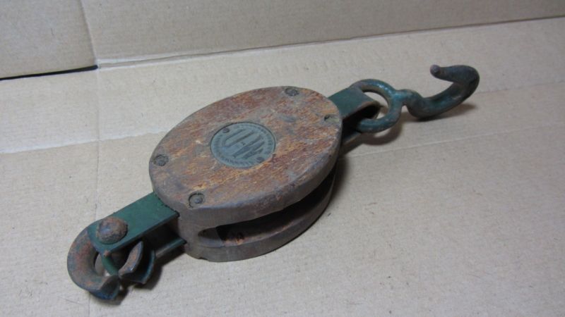 Title (ebay affiliate link): Vintage "UW" wooden block and tackle pulley