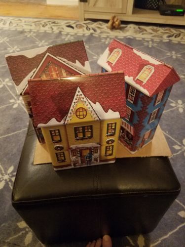 Title (ebay affiliate link): Christmas Holiday Tins, Town Hall, The Chocolate Shop, House