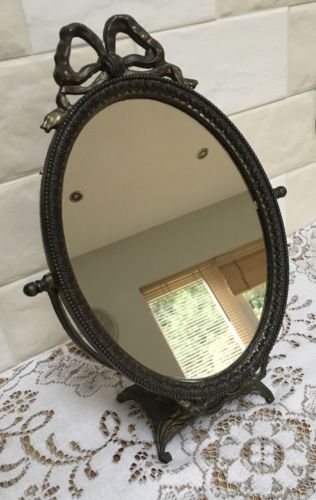 Vintage Oval Metal Dressing Table Swivel Mirror