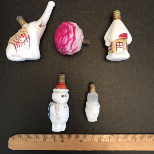 Figural Christmas Light Bulb Milk Glass Vintage Elephant Rose Cottage Snowman