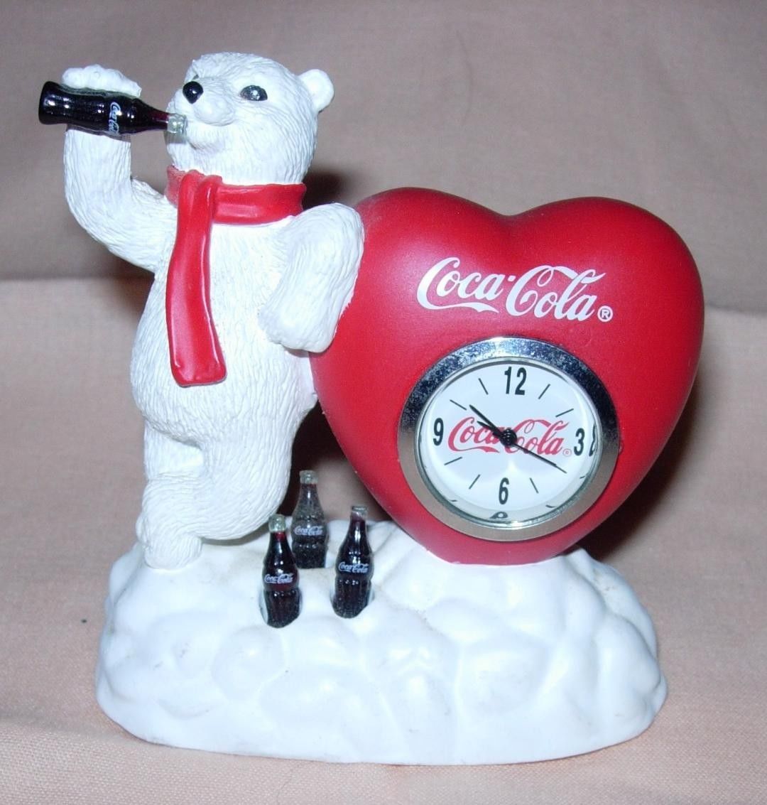 Coca Cola Bear with Heart Shaped Clock