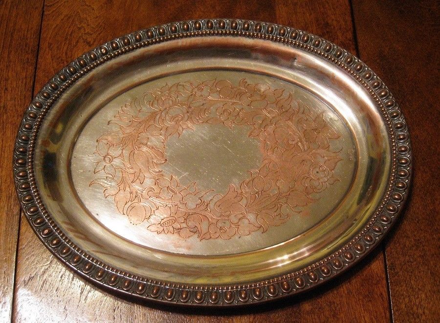 Title (ebay affiliate link): 19th C Silver plate Copper Marked Imperial Eagle Russian Czar Era Etched Tray