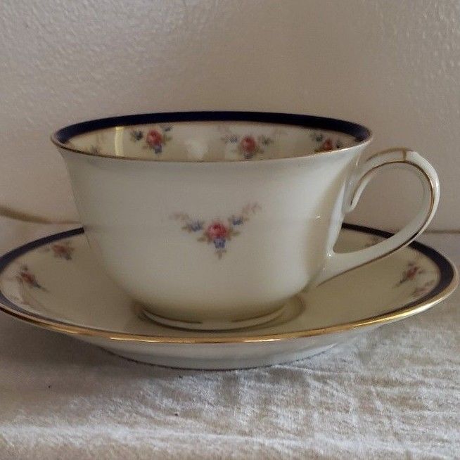 Vintage Bavaria Tea Cup And Saucer, Numbered, Blue and Gold Trim, Roses