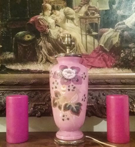 Victorian pink opaline milk glass Table Lamp Perfect Working Order