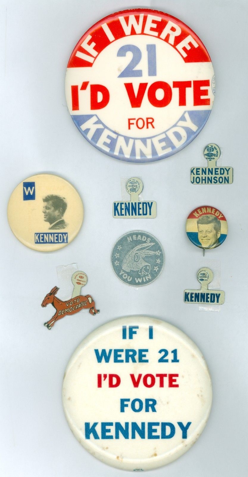 Title (ebay affiliate link): 4 Vintage 1960 President John Kennedy Political Pinback Buttons 4 Tabs &1 Token