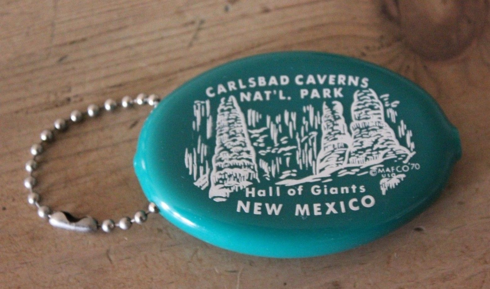 Title (ebay affiliate link): Oval Rubber Squeeze Coin Purse Change Holder Keychain Carlsbad Caverns Souvenir