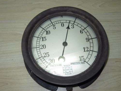 Antique US Gauge Co. NY Brass & cast vacuum pressure Gauge Steampunk 6'''' face