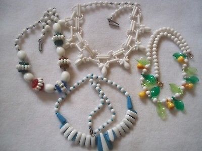 Title (ebay affiliate link): NICE 4 pc vintage MILKGLASS NECKLACE LOT - beads, multi color, fruit,blue, glass