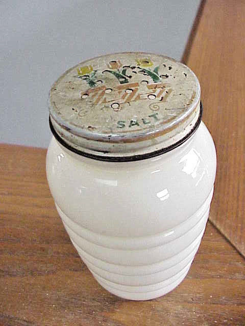 Vintage Fire King Tulips Metal Lid Milk Glass Salt Shaker