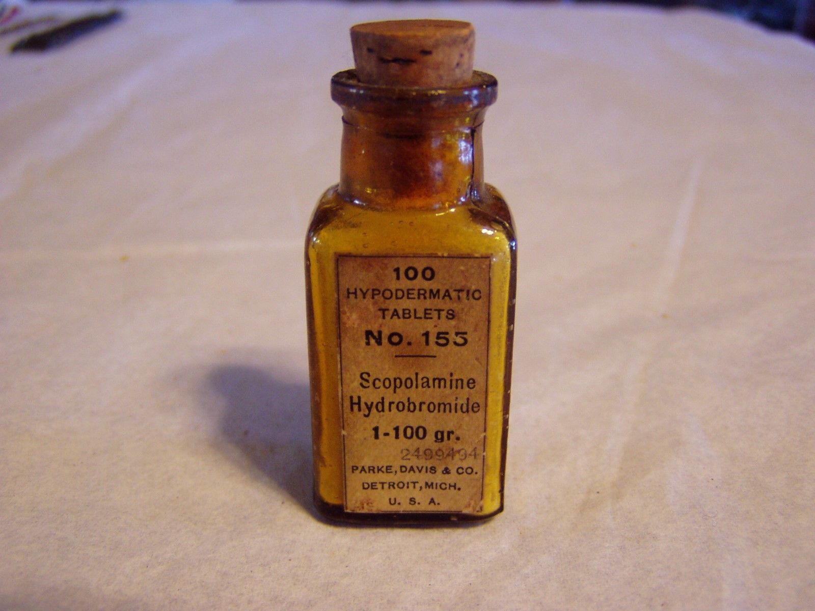Title (ebay affiliate link): ANTIQUE SCOPOLAMINE HYDROBROMIDE POISON AMBER PARKE DAVIS & CO APOTHECARY BOTTLE