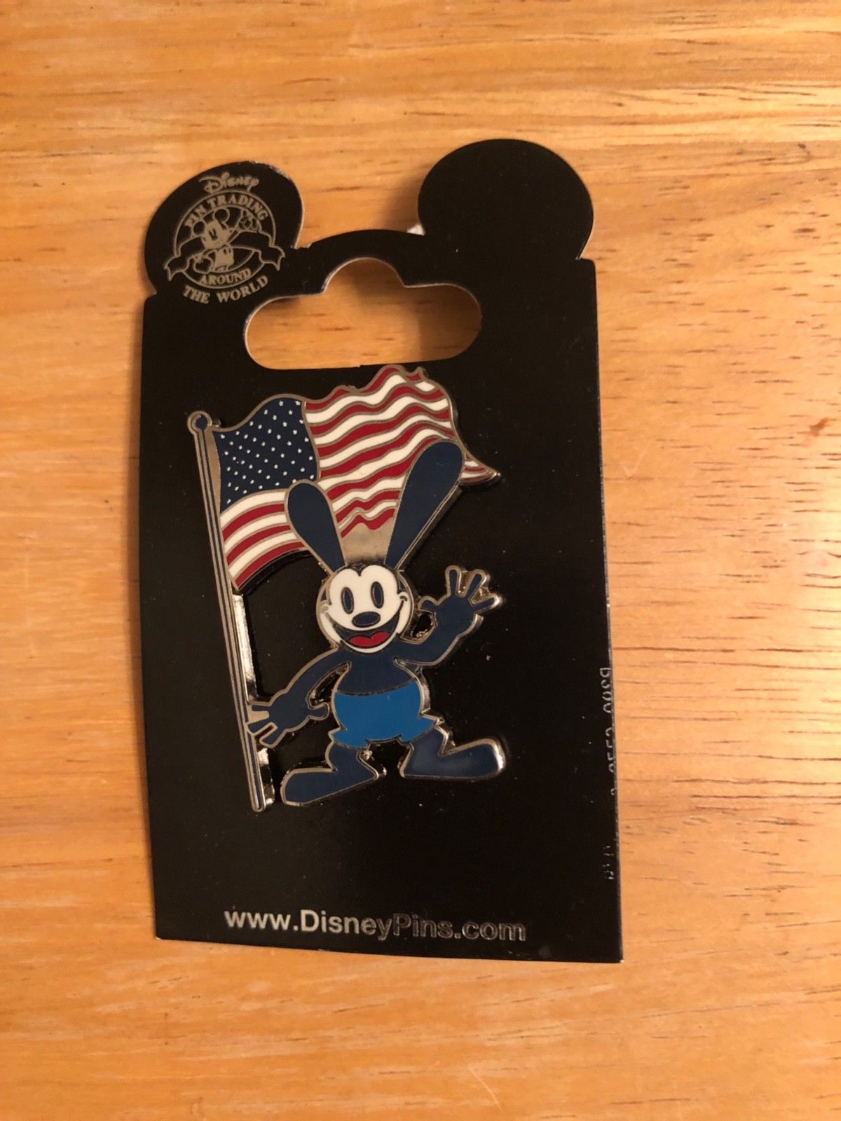 Title (ebay affiliate link): Disney Pin Oswald the original Mickey carrying flag new on card