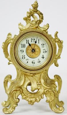 Antique Mantel Clock Gilt Metal Carriage Desk Clock Circa 1900 Working Order