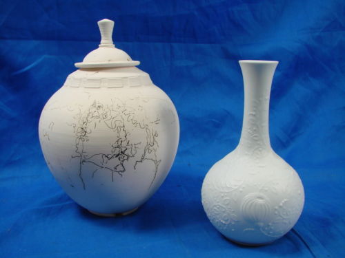 Beautiful Vintage White Kaiser Vases One With Flower Imprints