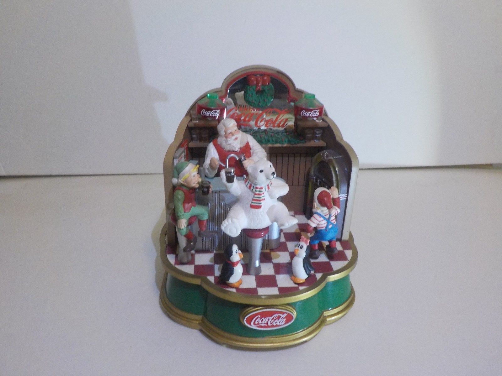 Title (ebay affiliate link): Charming Coca-Cola Christmas collectible with dancing figures and theme music