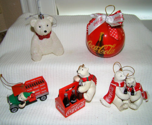Title (ebay affiliate link): Lot 5 Coca Cola /Coke Christmas Ornaments -Bears- Advertising