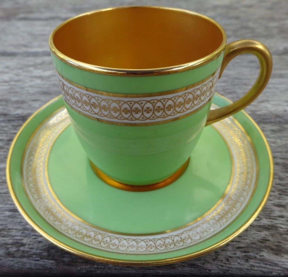 Couldon Ltd China Demitasse Cup & Saucer - Pale Green and Rich Gold Decoration