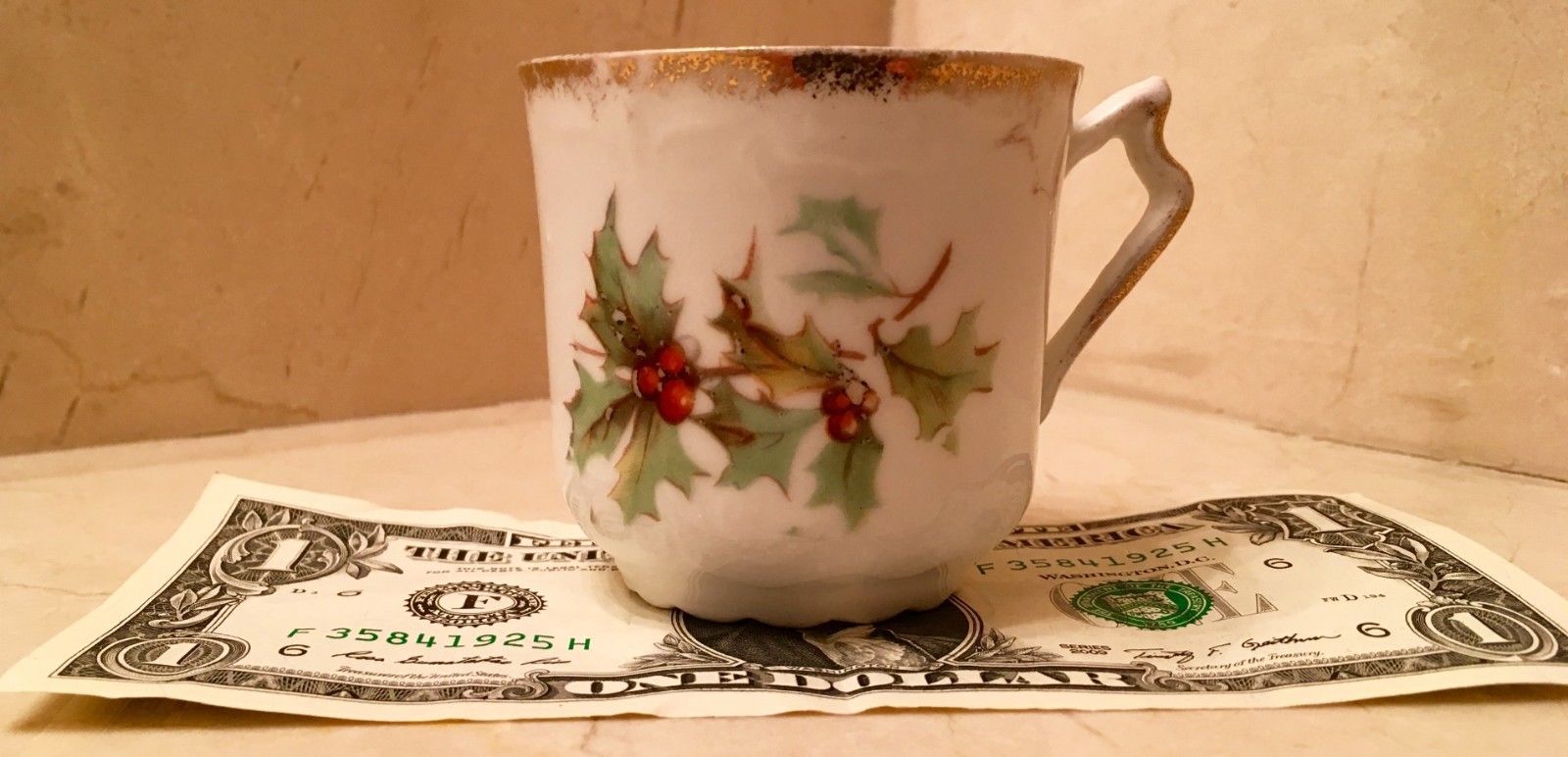 Title (ebay affiliate link): Holly Cup Unmarked Child''s Bone China Antique 2-3/8" High x 2-1/2" Wide + Handle