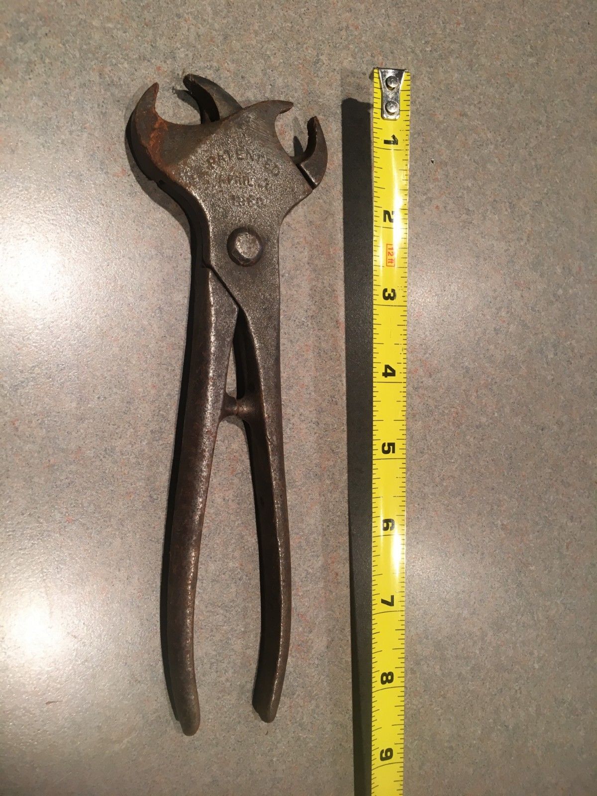 Antique Cast Iron Double Head Hog Ring Pliers (Patent 1860)