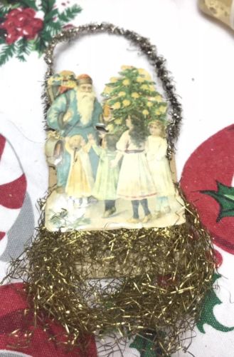 VTG Antique German Die Cut embossed Scrap Tinsel Christmas Ornament Santa Kids