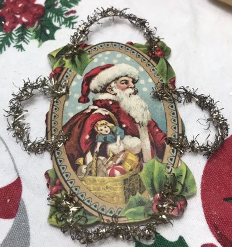 Title (ebay affiliate link): VTG Antique German Die Cut embossed Scrap Tinsel Christmas Ornament Santa Claus
