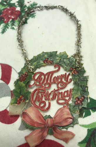 Title (ebay affiliate link): VTG Antique German Die Cut embossed Scrap Tinsel Ornament Merry Christmas Wreath