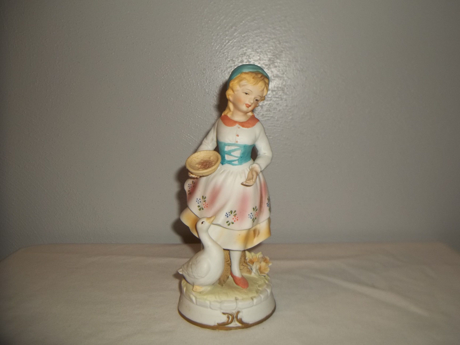 Title (ebay affiliate link): VINTAGE PHEASANT GIRL W/ BOWL FEEDING GOOSE HAND PAINTED TRIM IN GOLD 7 3/4" T