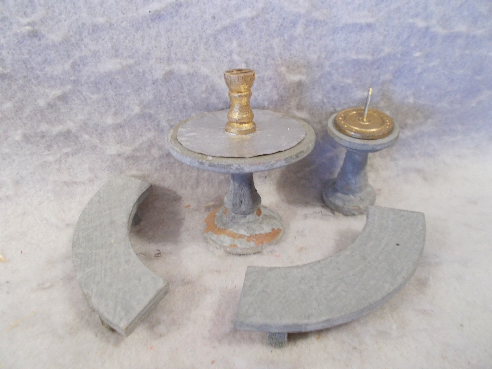 VINTAGE PUTZ CHRISTMAS GARDEN PIECES-SUNDIAL, FOUNTAIN, BENCHES